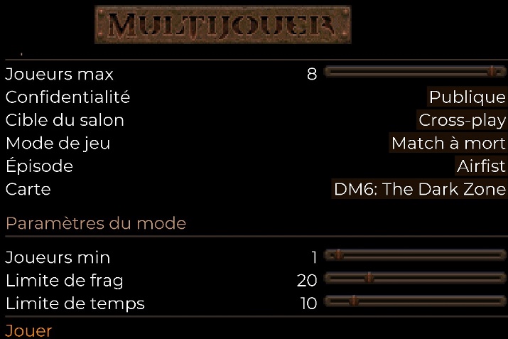 Quake Bethesda utilise un fichier MAPDB.JSON pour paramétrer les éléments suivants :